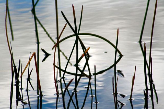I squatted to take a shot of a curved reed in a pond. I clicked, then