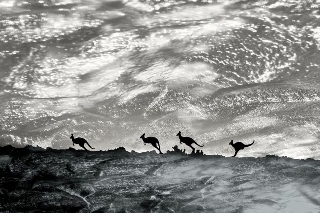 in silhouette on the horizon. I like the fact that the 4 Kangaroos look