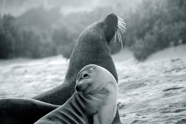 Seals at dusk. Relaxing at Seal Bay - Kangaroo Island South Australia.