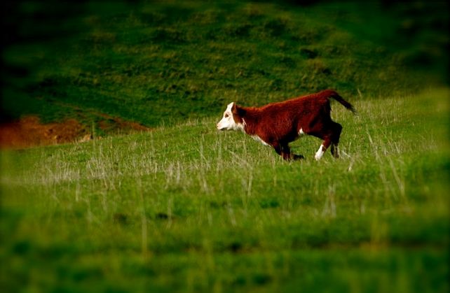 Calf galloping down the slope of a paddock in the beautiful Fleurieu Peninsula South Australia.