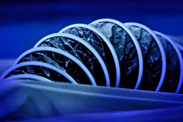 Exhaust hose in a powder coating factory. Given it a blue-ish and futuristic look.