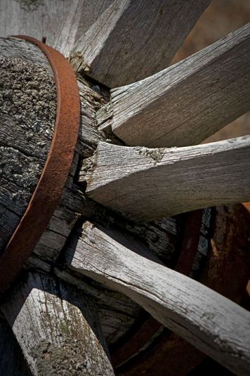 Part of an old cart wheel from early times, found on a farm property.