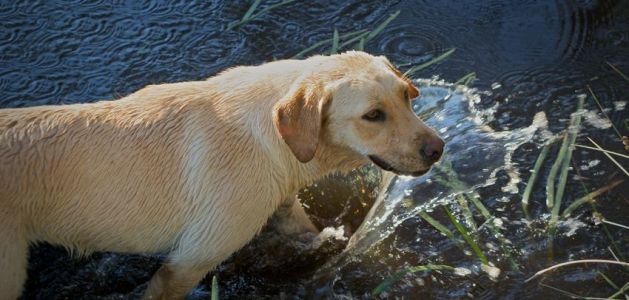 Labrador 'Willow' taking a refreshing dip in the farm dam.