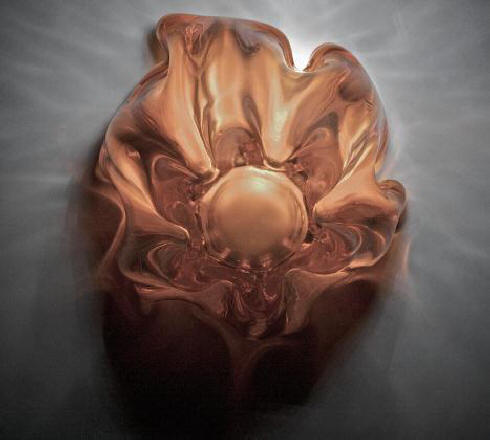 We look down on a distorted glass fruit bowl. Turned all the lights off in the kitchen and lit it only with a torch.