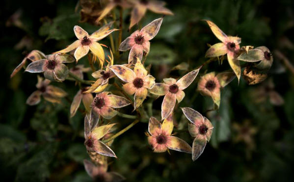 As the flowers drop off wild roses a beautiful collection of rose hips appear. Taken on a farm garden.
